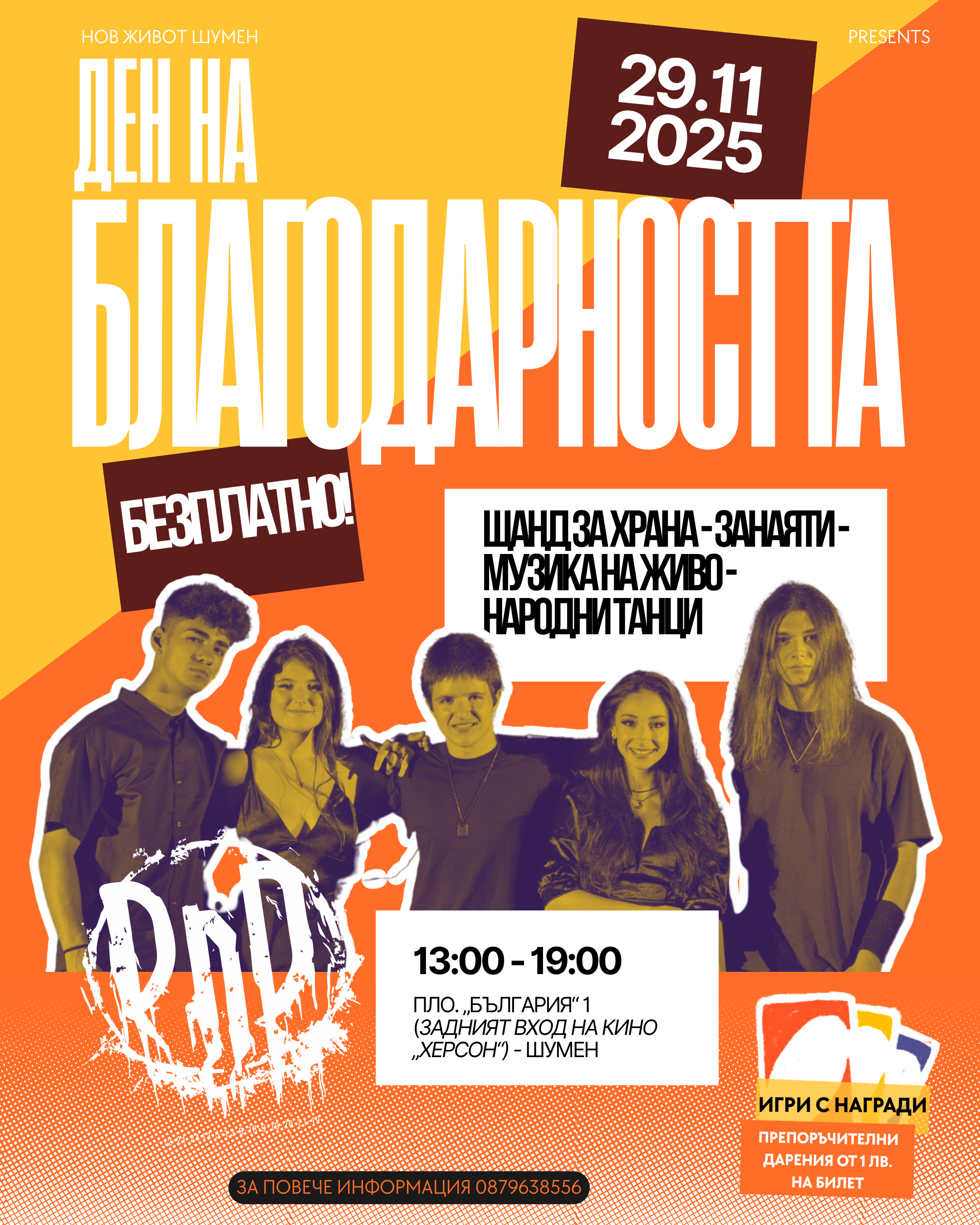 On Saturday, November 29, from 1:00 to 7:00 PM we will have a festival for the entire family, as we celebrate the Day of the Christian Family and Thanksgiving. There will be a ton of food, fun games, folk dancing, and a concert by the band DnD. Games and food is on a ticket basis. Tickets are given for a suggested donation of 1 lev. All donations go towards the final payment on our church building.
